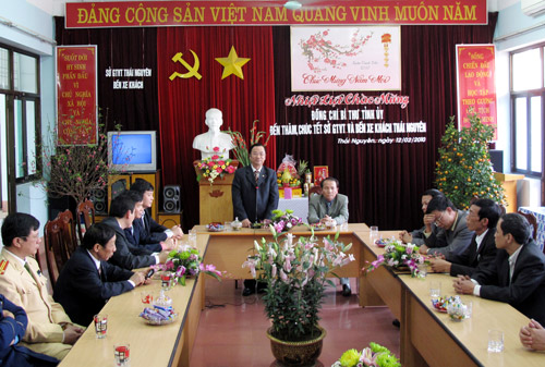 Chiều 12-2, đồng chí Nguyễn Văn Vượng, Bí thư Tỉnh ủy, Chủ tịch HĐND tỉnh, Trưởng Đoàn đại biểu Quốc hội tỉnh đã đến chúc Tết cán bộ, CNVC của Sở Giao thông - Vận tải và Bến xe khách Thái Nguyên (ảnh).