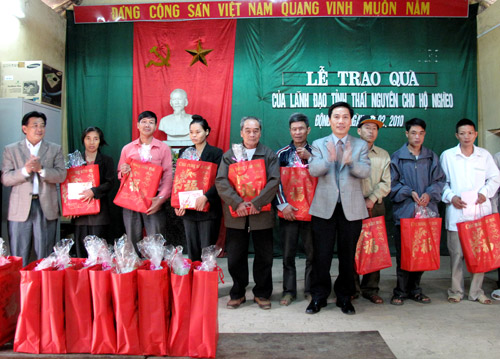 Nhân dịp đón Tết Canh Dần 2010, ngày 12-2, các đồng chí: Vũ Hồng Bắc, Ủy viên Ban Thường vụ, Phó Chủ tịch UBND tỉnh; Đỗ Mạnh Hùng, Ủy viên Ban Thường vụ, Phó trưởng Đoàn đại biểu Quốc hội đơn vị tỉnh Thái Nguyên; lãnh đạo Sở Lao động- Thương binh và Xã hội; Công ty TNHH Xây dựng và Phát triển nông thôn miền núi… đã thăm và tặng quà hộ nghèo, gia đình chính sách của huyện Phú Lương.