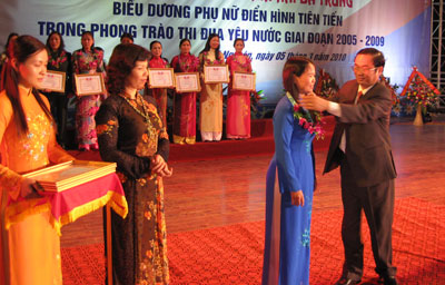 Ngày 5/3, tại Trung tâm Hội nghị tỉnh, Ban Vì sự tiến bộ Phụ nữ, Hội LHPN tỉnh đã long trọng tổ chức Lễ kỷ niệm 100 năm Ngày Quốc tế Phụ nữ (8/3); 1970 năm Khởi nghĩa Hai Bà Trưng. Tôn vinh, biểu dương 25 tập thể, 75 cá nhân phụ nữ điển hình tiên tiến trong phong trào thi đua yêu nước giai đoạn 2005-2009.