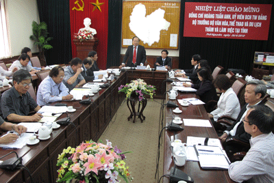Thay mặt Tỉnh ủy, HĐND, UBND tỉnh, đồng chí Phạm Xuân Đương đã báo cáo nhanh với Bộ trưởng về tình hình phát triển kinh tế - văn hoá, xã hội của Thái Nguyên năm 2009 và định hướng phát triển của tỉnh năm 2010. Đại diện lãnh đạo Sở Văn hóa - Thể thao và Du lịch đã báo cáo với đồng chí Bộ trưởng về những kết quả tỉnh Thái Nguyên đạt được năm 2009 và các mặt hạn chế cần rút kinh nghiệm trong năm 2010.