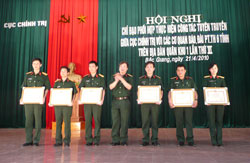Cũng trong 2 năm, cơ quan thông tấn báo chí các địa phương phối hợp với Bộ Chỉ huy quân sự (BCHQS) tỉnh tuyên truyền thường xuyên. Đã có 100% Bộ CHQS phối hợp tuyên truyền từ 2 đến 3 chuyên mục trên Đài PT-TH các địa phương…