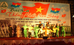 Chương trình ca múa nhạc “Bài ca thống nhất non sông” với nhiều tiết mục ca múa nhạc đặc sắc với chủ đề ca ngợi quê hương đất nước, Đảng, Bác Hồ vĩ đại, đặc biệt là những ca khúc thể hiện khí thế hào hùng và niềm tự hào về chiến thắng mùa xuân năm 1975 của quân và dân ta như: “Tiến về Sài Gòn”, “Người là niềm tin tất thắng”, “Bài ca thống nhất”, “Đất nước trọn niềm vui”, “ Như có Bác trong ngày vui đại thắng”… thu hút đông đảo người xem.