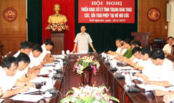 Kết luận tại Hội nghị, đồng chí Đặng Viết Thuần, Phó Chủ tịch UBND tỉnh, Trưởng Ban Chỉ đạo yêu cầu: Từ 1/6/2010 sẽ chấm dứt mọi hoạt động khai thác cát sỏi trái phép tại khu vực hồ Núi Cốc và từ 10/6/2010 dừng hoạt động của các bến bãi trái phép tại khu vực này. Nếu sau đó các đối tượng vẫn cố tình hoạt động, các ngành chức năng sẽ tiến hành tịch thu phương tiện và xử lý theo quy định. Sở Nông nghiệp và PTNT - cơ quan thường trực Ban Chỉ đạo khẩn trương hoàn tất việc thành lập các chốt kiểm soát và xây dựng các phương án hậu giải tỏa, trong đó chú trọng đến vấn đề hỗ trợ giải quyết việc làm cho lao động địa phương.