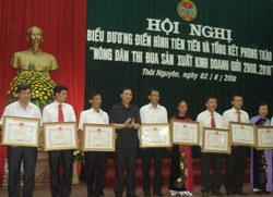 Nhân dịp này, UBND tỉnh đã tặng Cờ thi đua xuất sắc cho tập thể HND T.P Thái Nguyên, tặng Bằng khen cho 11 tập thể HND các cấp và 55 cá nhân vì đã có thành tích xuất sắc trong phong trào “NDTĐSXKDG”; HND tỉnh trao Giấy khen cho 20 hộ hội viên SXKDG, khen thưởng 31 cá nhân xuất sắc trong phong trào thi đua yêu nước giai đoạn 2006-2010.
