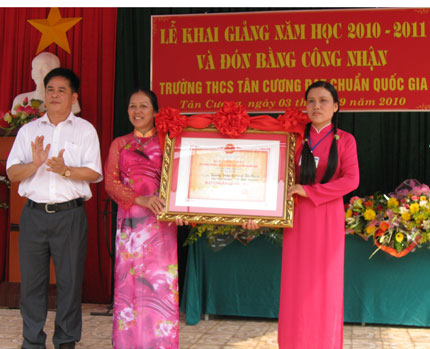 *Tại T.P Thái Nguyên, ngày 3-9, Trường THCS Tân Cương (T.P Thái Nguyên) tổ chức Lễ khai giảng năm học 2010-2011 và đón nhận Bằng công nhận chuẩn Quốc gia.