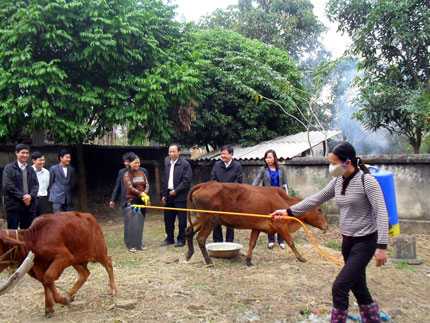 Cùng với đó, thực hiện khoanh vùng và triển khai phun hóa chất khử trùng tiêu độc tại các chuồng trại, tiến hành vệ sinh môi trường khu vực có dịch và các hộ xung quanh. Ngoài ra, Trạm Thú y huyện còn theo dõi sát sao tình hình dịch bệnh trên địa bàn, thường xuyên thông báo về tình hình dịch bệnh cho các địa phương trong toàn huyện, hướng dẫn cho người dân sử dụng các biện pháp phòng và chữa trị cho gia súc bị bệnh… nhằm hạn chế đến mức thấp nhất dịch bệnh lây lan.