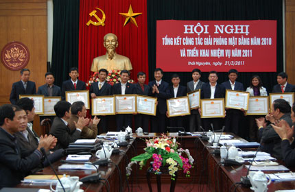 Hội nghị cũng đã trao 48 bằng khen cho 48 tập thể, các hộ gia đình và cá nhân đã có thành tích xuất sắc trong công tác bồi thường, GPMB năm 2010 (ảnh)