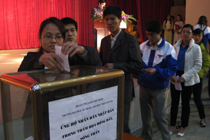 Nhân dịp này, Đoàn trường đã phát động tất cả mọi đoàn viên cùng tham gia quyên góp, ủng hộ nhân dân Nhật Bản trong thảm họa động đất và sóng thần. Kết quả đã quyên góp được gần 50 triệu đồng…