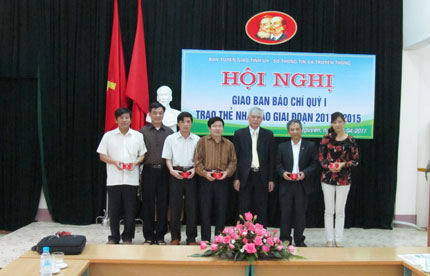 Ngày 22-4, Ban Tuyên giáo Tỉnh ủy và Sở Thông tin - Truyền thông tổ chức Hội nghị giao ban báo chí quý I, trao thẻ nhà báo giai đoạn 2011-2015. Các đồng chí Chu Văn Nga, Phó Trưởng ban Thường trực Ban Tuyên giáo Tỉnh ủy; Vũ Quốc Thạnh, Giám đốc Sở Thông tin - Truyền thông chủ trì Hội nghị.
