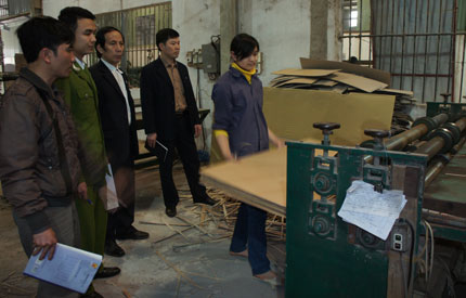 Tiếp tục chương trình kiểm tra việc thực hiện pháp luật lao động và các hoạt động hưởng ứng Tuần lễ Quốc gia về An toàn vệ sinh lao động - Phòng chống cháy nổ (AT-VSLĐ-PCCN), ngày 6-4, Đoàn kiểm tra liên ngành của tỉnh tiếp tục đi kiểm tra tại Thị xã Sông Công.
