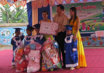 Trong không khí tưng bừng chào đón ngày Quốc tế thiếu nhi (1-6), ngày 26-5, Đoàn công tác của tỉnh do đồng chí Đặng Văn Ngự, Uỷ viên Ban Thường vụ, Trưởng Ban Tổ chức Tỉnh uỷ làm Trưởng đoàn đã đến thăm và tặng quà các cháu thiếu nhi của 3 trường mầm non: Hùng Sơn 1, Cát Nê, Ký Phú trên địa bàn huyện Đại Từ (ảnh).