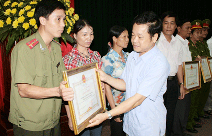 Nhân dịp này, UBND tỉnh cũng trao Bằng khen của Thủ tướng Chính phủ cho Thiếu tá Trần Văn Lịch, cán bộ Phòng Cảnh sát điều tra tội phạm ma tuý (Công an tỉnh); trao Bằng khen của Chủ tịch UBND tỉnh cho 25 tập thể và 25 cá nhân đã có thành tích xuất sắc trong công tác PCMT giai đoạn 2006-2010 (Ảnh).