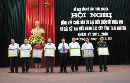 Nhân dịp này đã có 56 tập thể và 74 cá nhân có thành tích xuất sắc đóng góp vào thành công của cuộc bầu cử được UBND tỉnh khen thưởng (ảnh).