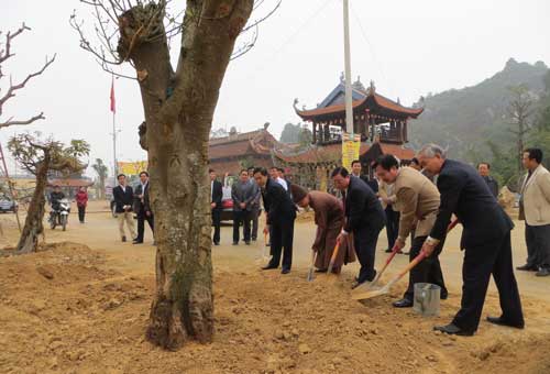 Ngay sau lễ dâng hương, đồng chí Bí thư Tỉnh ủy đã cùng các đồng chí lãnh đạo UBND, Ủy ban MTTQ, các sở, ban, ngành của tỉnh, chính quyền địa phương và nhà chùa đã tiến hành trồng cây lưu niệm tại vườn Bồ Đề.