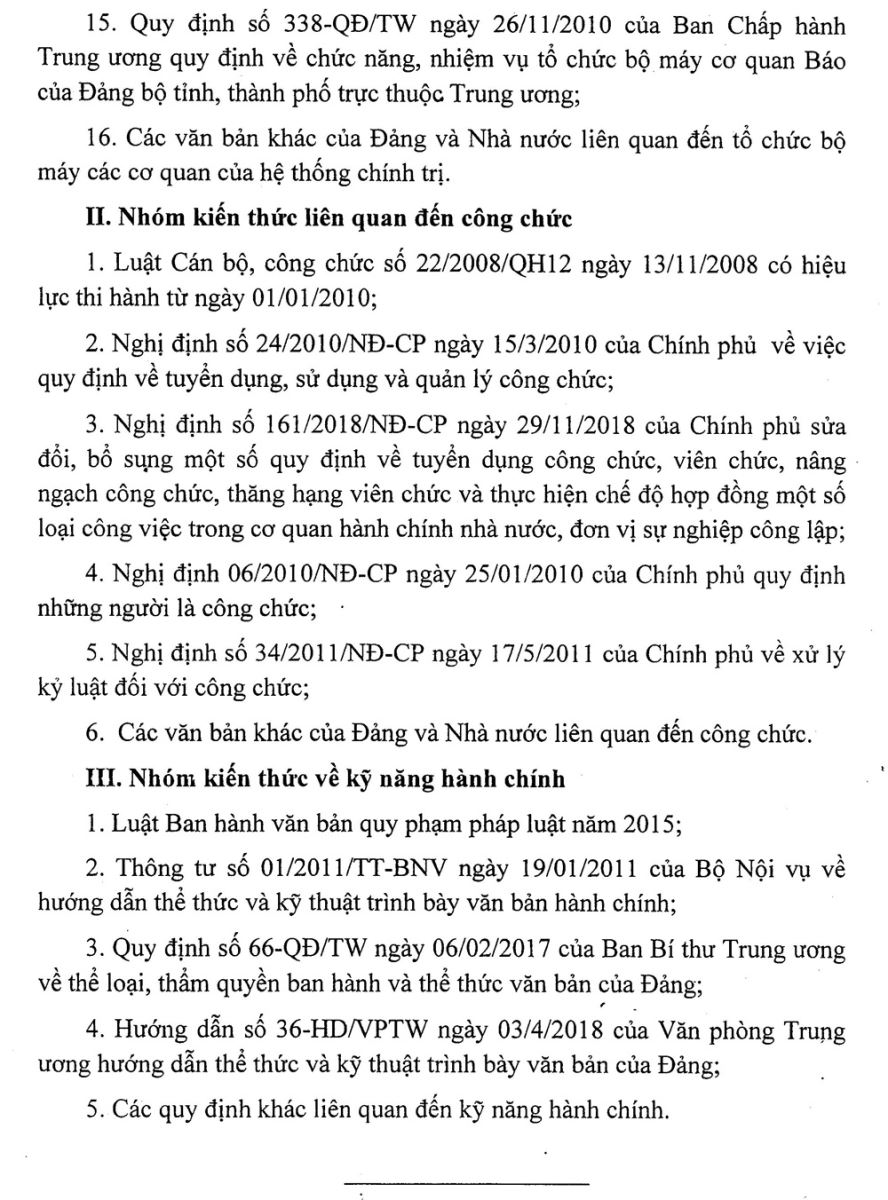 Thực hiện Kế hoạch số 03-KH/HĐTD ngày 19/6/2019 của Hội đồng tuyển dụng công chức, viên chức về việc tổ chức thi tuyển công chức, viên chức cơ quan Đảng, Mặt trận Tổ quốc và các tổ chức chính trị - xã hội tỉnh Thái Nguyên năm 2019. Báo Thái Nguyên đăng tải Danh mục tài liệu tham khảo thi môn Kiến thức chung tại vòng 1 kỳ thi tuyển công chức, viên chức cơ quan Đảng, Mặt trận Tổ quốc và các tổ chức chính trị - xã hội tỉnh Thái Nguyên năm 2019 do Ban Tổ chức Tỉnh ủy cung cấp như sau: