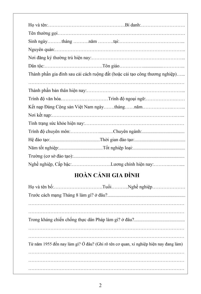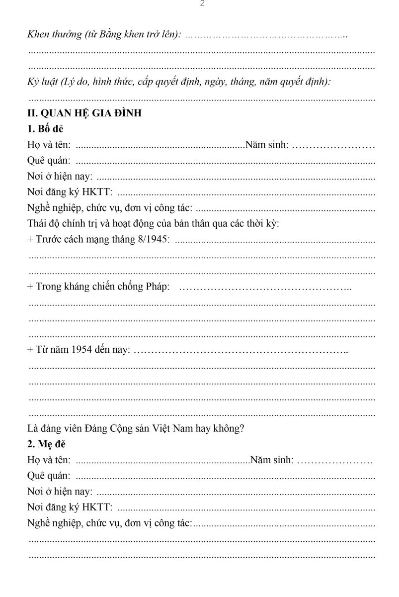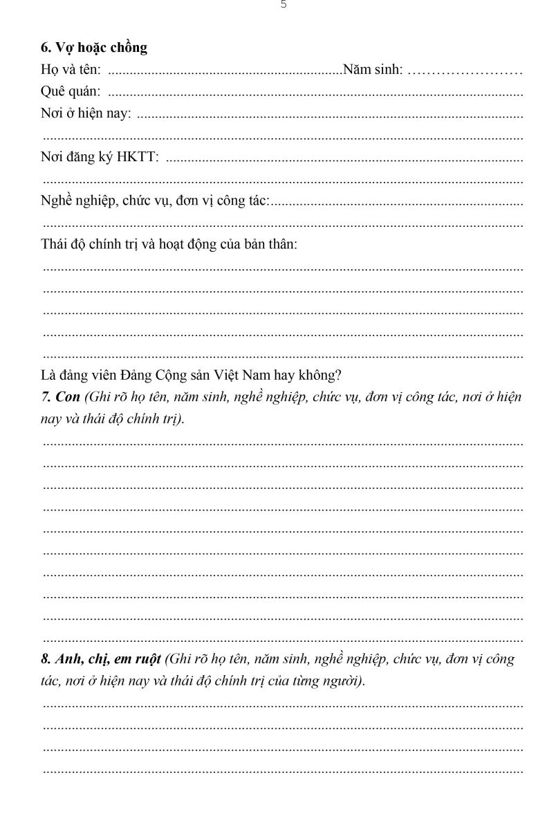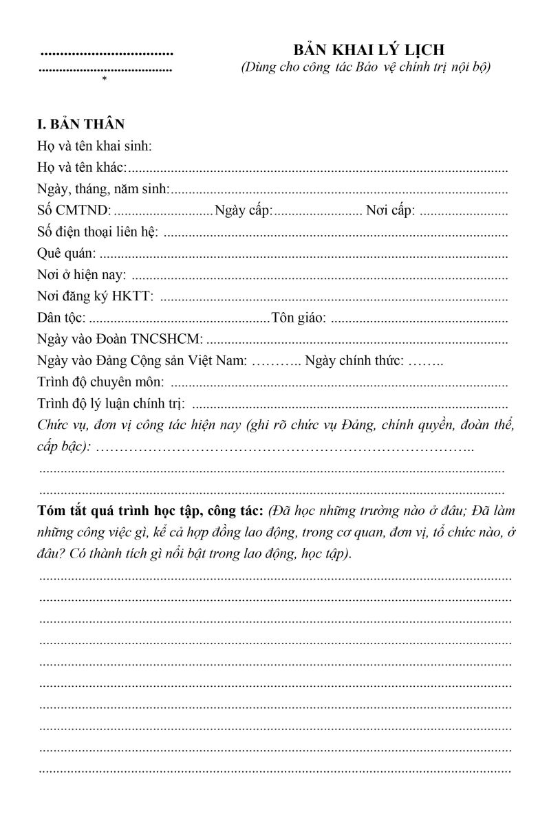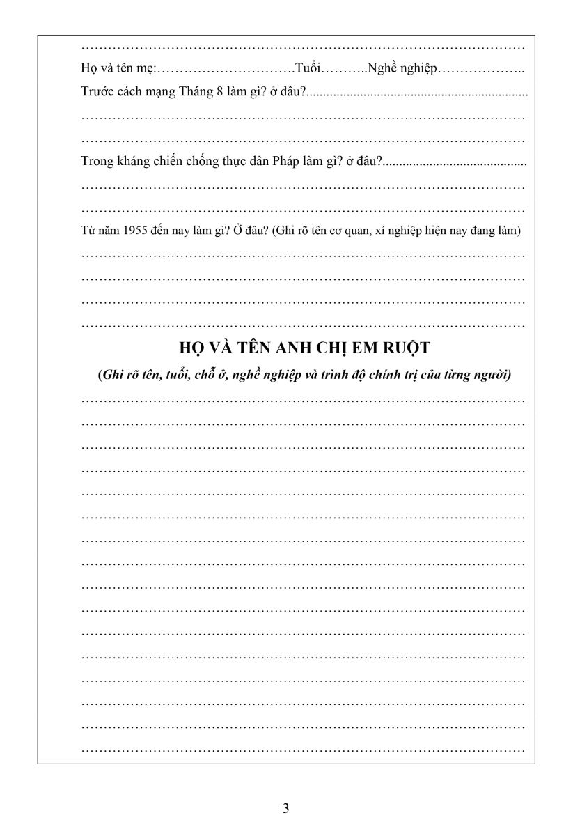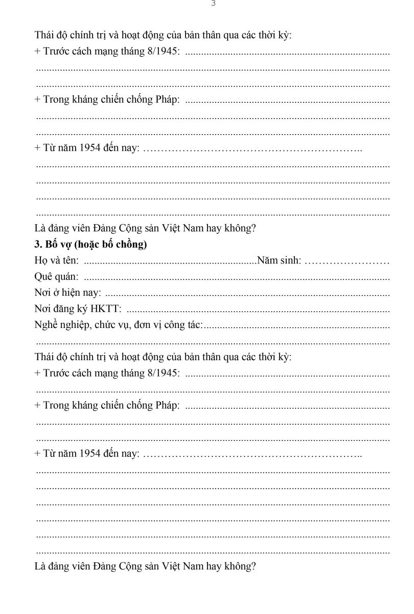 3. Bản khai lý lịch dùng cho công tác thẩm định tiêu chuẩn chính trị (áp dụng đối với các thí sinh đăng ký dự thi vào vị trí việc làm có yêu cầu bảo đảm tiêu chuẩn chính trị.