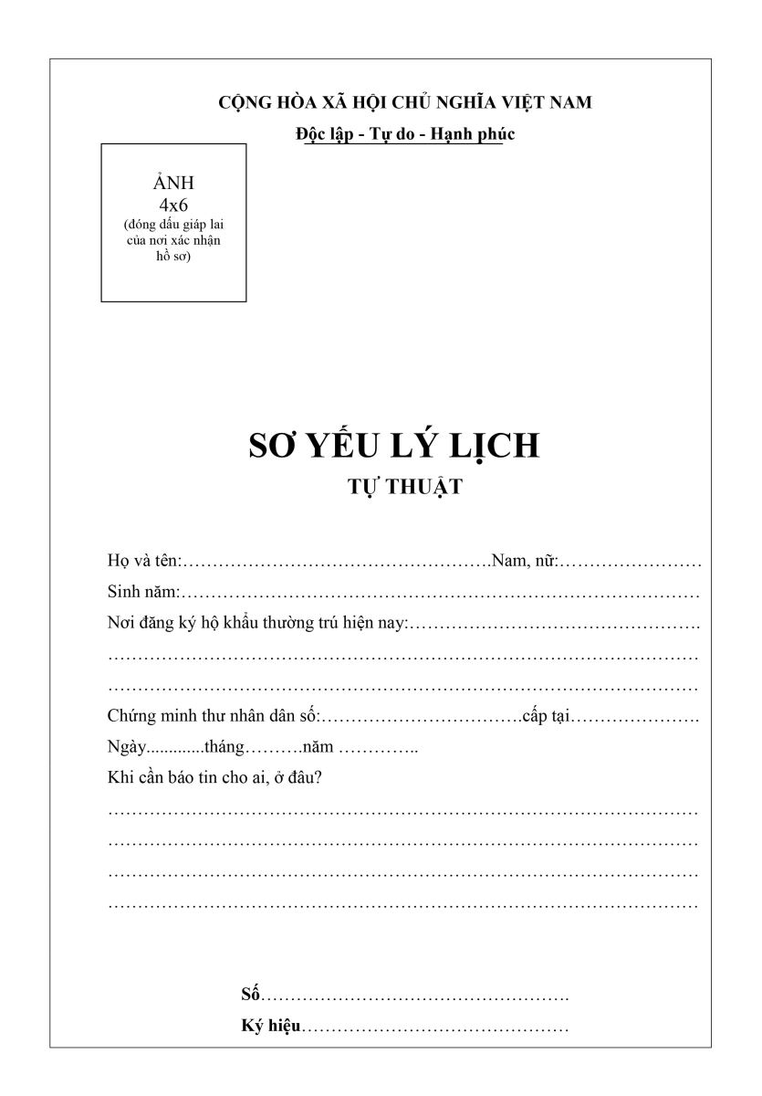 2. Bản Sơ yếu lý lịch tự thuật (theo Mẫu) có dán ảnh 4x6 do người dự tuyển tự khai và được UBND xã, phường, thị trấn nơi cư trú hoặc cơ quan, tổ chức, đơn vị nơi người đó đang làm việc xác nhận trong thời hạn 30 ngày, tính đến ngày nộp hồ sơ dự tuyển;