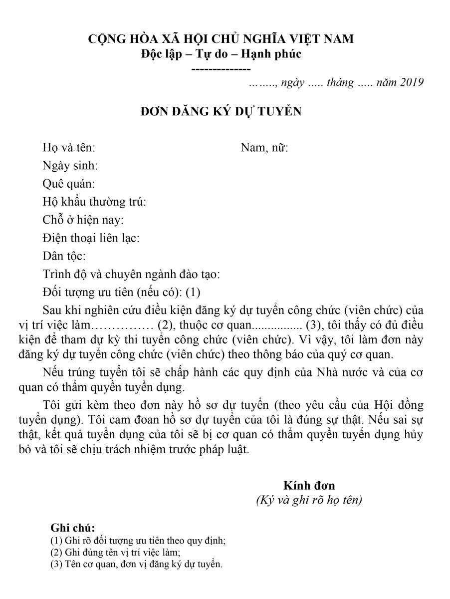 1. Đơn đăng ký dự tuyển (theo mẫu);