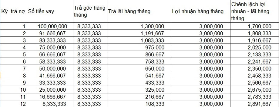 Lãi suất phụ thuộc vào dư nợ giảm dần