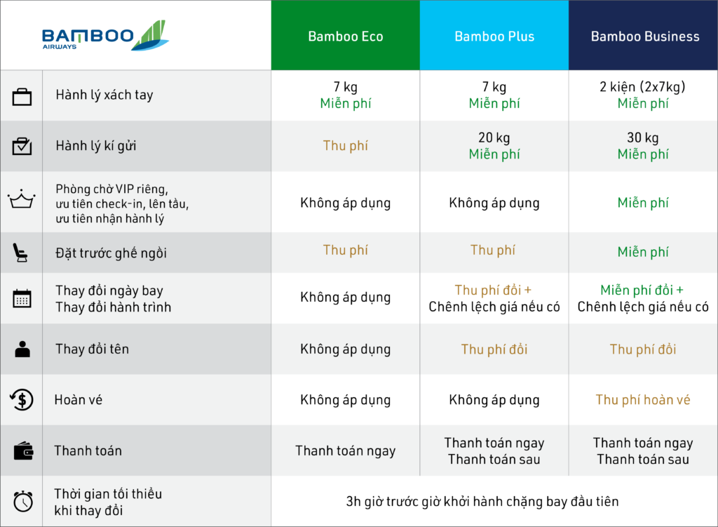 Tham khảo bảng phí dịch vụ của Bamboo Airways @sưu tầm