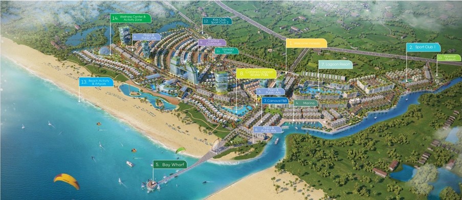 Những dịch vụ đầy hấp dẫn và mới lạ như hồ cảnh quan, khu thác nước, khu Clubhouse hay bến du thuyền Marina, khu Big Square, phố đi bộ kết hợp cùng vòng đu quay, hải đăng hay điểm ngắm cảnh ven sông…đáp ứng cho một tiêu chuẩn nghỉ dưỡng hơn cả hoàn hảo dành cho khách du lịch.