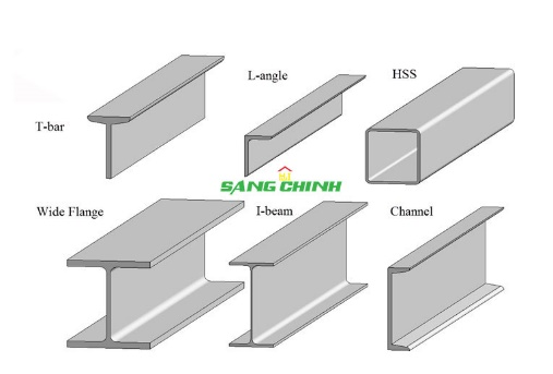 Thép hình có khá nhiều loại khác nhau, trong đó 6 loại thép được sử dụng phổ biến nhất là I, H, U, C, V và T.