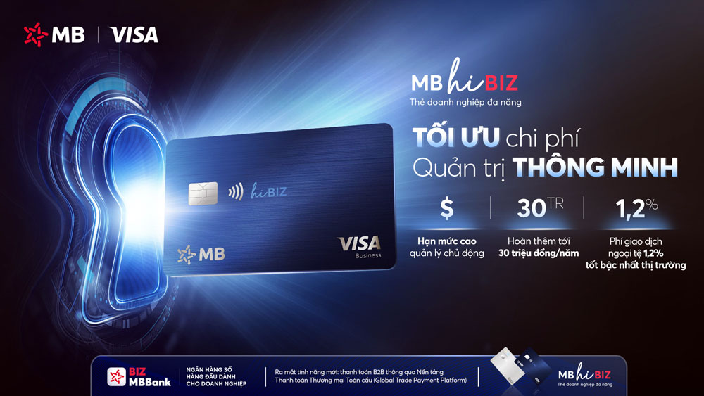 Ngân hàng TMCP Quân đội (MB) vừa giới thiệu thẻ doanh nghiệp MB Hi BIZ phiên bản mới, hợp tác cùng Visa và KOTRA. Sản phẩm hướng tới hỗ trợ doanh nghiệp quản trị chi tiêu tinh gọn, tối ưu dòng tiền và mở rộng thanh toán quốc tế trong bối cảnh chuyển đổi số ngày càng mạnh mẽ.
