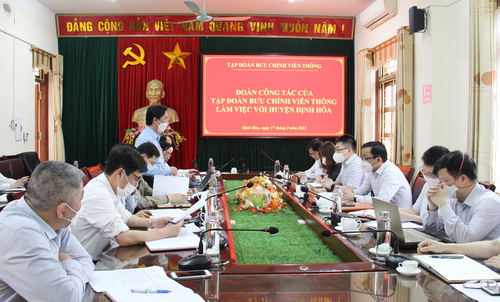 Vừa qua, Đoàn công tác của Tập đoàn Bưu Chính Viễn thông Việt Nam có buổi làm việc với UBND huyện Định Hoá về công tác hỗ trợ xây dựng huyện nông thôn mới.