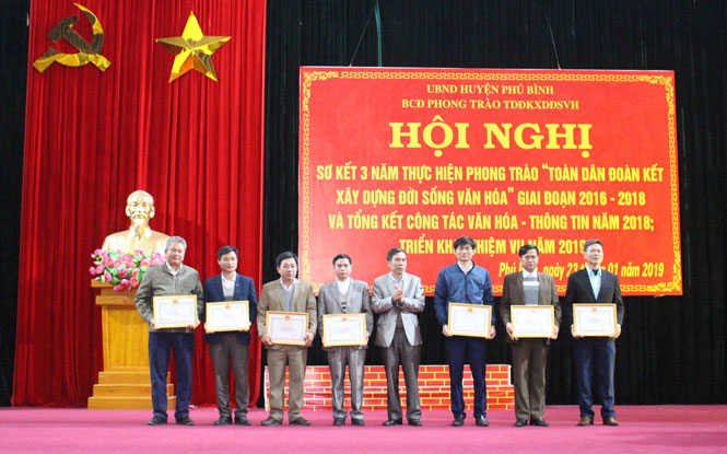 Với những kết quả trên, tại Hội nghị, đã có 25 tập thể cơ quan, đơn vị, xóm, tổ dân phố và 13 cá nhân được khen thưởng vì có thành tích xuất sắc trong phong trào “TDĐKXDĐSVH” giai đoạn 2016 - 2018; 32 khu dân cư đạt danh hiệu Làng văn hóa cấp huyện…