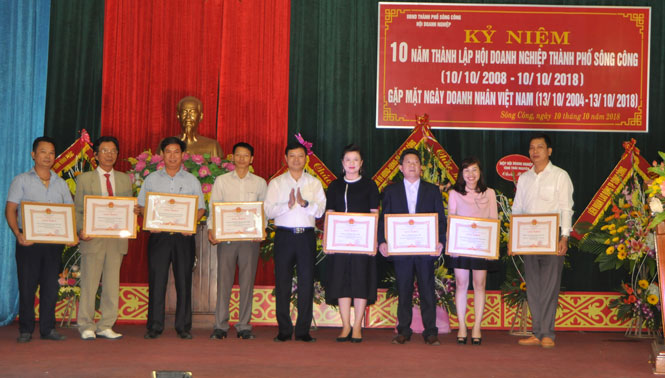 Chiều 10-10, Hội Doanh nghiệp (DN) T.P Sông Công đã tổ chức Kỷ niệm 10 năm Ngày thành lập (10/10/2008-10/10/2018) và Gặp mặt nhân Ngày Doanh nhân Việt Nam (13-10). Đến dự có đồng chí Dương Xuân Hùng, Ủy viên Ban Thường vụ Tỉnh ủy, Bí thư Thành ủy Sông Công.