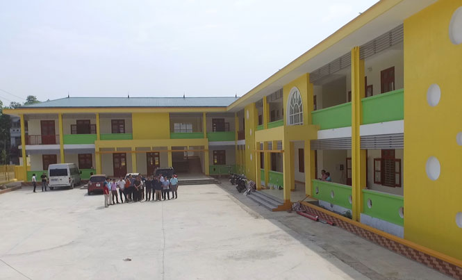Có mặt tại công trình Trường Mầm non Quang Trung vào cuối tháng 5 vừa qua, chúng tôi mới thấy hết nỗi vất vả, cũng như sự quyết tâm cao của chủ đầu tư và nhà thầu thi công. Ngôi trường có tổng mức đầu tư 19 tỷ đồng, được khởi công từ tháng 6-2017, quy mô xây dựng nhà lớp học 2 tầng với 16 phòng học cùng các công trình phụ trợ khác, như: Nhà bếp, nhà hiệu bộ, bể nước cứu hỏa… tất cả đều nằm trên khuôn viên rộng rãi, bằng phẳng.