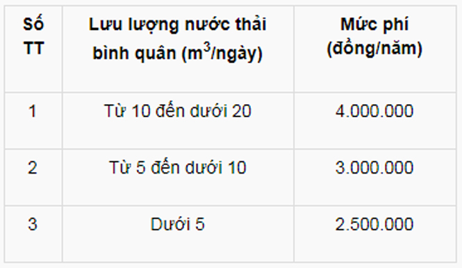 Về mức phí bảo vệ môi trường đối với nước thải công nghiệp, Nghị định quy định: Cơ sở có tổng lượng nước thải trung bình trong năm dưới 20 m3/ngày (24 giờ) áp dụng phí cố định tính theo khối lượng nước thải (không áp dụng mức phí biến đổi) như sau: Năm 2020, áp dụng mức phí 1.500.000 đồng/năm.