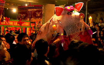 Hơn chục con heo nặng trên dưới 2 tạ mà dân làng gọi là "ông Lợn" sau quá trình chăm sóc đặc biệt được rước vào đình làng tế thần. Ngày 13/1 âm lịch hàng năm, người dân xã La Phù, huyện Hoài Đức (Hà Tây) lại tưng bừng mở lễ tế giỗ Thành Hoàng