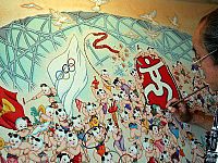 Họa sĩ Dong Jing chuyên vẽ tranh truyền thống ở thành phố Thiên Tân (Trung Quốc) vừa hoàn thành một bức tranh độc đáo chào mừng Olympic Bắc Kinh 2008.
