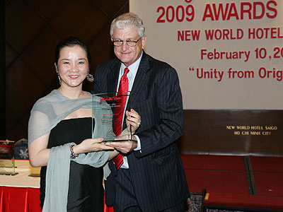 Giám đốc JRP VN, bà Võ Thị Xuân Trang, nhận giải thưởng “trường có thành tích phát triển liên tục” của JRP châu Á.