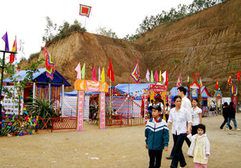 Tiếng hò reo vang dội cuốn chúng tôi đến với các trò chơi, ở trò bịt mắt bắt dê, ba chàng trai khỏe mạnh, mắt bị bịt kín bằng dải lụa hồng, tay quờ quạng, mò mẫm đuổi theo một chú dê béo núc, có lúc lại vồ nhầm vào người nhau, hoặc va vào nhau ngã kềnh càng khiến người xem thích thú, cười sảng khoái. Trò chơi tung còn cũng thật thú vị, những quả còn được làm rất khéo léo với nhiều màu sắc sặc sỡ được tung lên điểm hồng tâm treo cao vút đến vài chục mét so với mặt đất. Đội nào ném xuyên hồng tâm, đội đó sẽ giành chiến thắng. Xem ra thật khó khăn vậy mà cuối cùng hồng tâm cũng bị xuyên thủng bằng một quả còn đỏ, tiếng reo hò khiến cho không gian như rộng hơn.