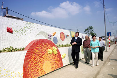 Sau hai tháng làm việc tại Bát Tràng và Hà Nội, nghệ sĩ gốm Đan Mạch Michael Geertsen cùng các nghệ nhân, nghệ sĩ Việt Nam đã hoàn thành 60 m2 tranh gốm trên Con đường gốm sứ.