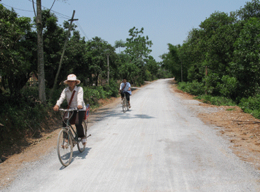 Cuối năm 2008, đường liên huyện Hợp Tiến- Phú Bình được đầu tư xây dựng nhưng không có kinh phí để đền bù giải phóng mặt bằng. Con đường đi qua xóm Hữu Nghị và ảnh hưởng đến đất ở, đất canh tác của 13 hộ dân trong xóm. Sau khi xã triển khai kế hoạch làm đường, xóm đã tổ chức họp thông báo với bà con chủ trương của Nhà nước về làm đường giao thông, đồng thời tuyên truyền, vận động bà con hiến đất làm đường. Gia đình đồng chí trưởng xóm đã gương mẫu hiến đất trước. Thấy được lợi ích thiết thực của con đường đối với đời sống, đặc biệt là các cháu nhỏ khi hàng ngày phải đến trường trên con đường lầy lội, các hộ dân đã sẵn sàng hiến hàng nghìn m2 đất để bàn giao mặt bằng cho đơn vị thi công. Điển hình như gia đình ông Lê Văn Dự hiến 300m2, Bùi Văn Đàng hiến trên 300m2, Lê Văn Trung hiến trên 100m2... Đến nay, con đường đã hoàn thành đưa vào sử dụng.