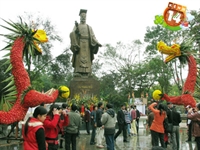Một trong những đại cảnh quan trọng là Biểu tượng Rồng thiêng với tháp hoa cao 6m với 9 rồng chầu được kết từ hoa và quả tươi. Bên cạnh đó, một cuốn sách lớn được kết bằng hoa đặt đối diện với Tháp bút Đài nghiên trên một thảm hoa lớn. Đại cảnh này nhằm thể hiện sự kết nối thời gian về tri thức của văn hoá dân tộc, của những danh nhân, hiền tài của đất nước nối tiếp nhau qua các thời kỳ đã làm nên một Thăng Long Hà Nội linh thiêng hào hoa.
