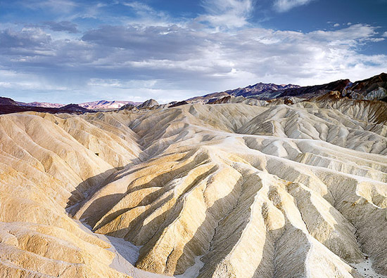 “Artist’s Drive”, một cảnh quan tự nhiên tuyệt đẹp được hình thành sau một giai đoạn núi lửa phun trào dữ dội tại Thung lũng chết. Một khối lượng lớn trầm tích từ ngọn núi Đen gần đó đã phủ kín lớp đất nền, hình thành nên khu vực đất bồi hình rẻ quạt cao đến 2.700m.