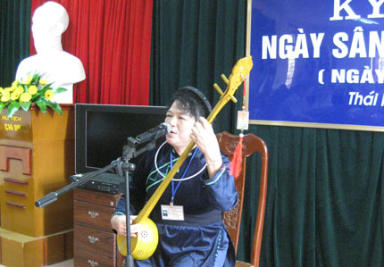 Tại buổi gặp mặt, các văn nghệ sĩ đã cùng nhau ôn lại truyền thống giỗ Tổ nghiệp sân khấu, cùng thưởng thức và biểu diễn những làn điệu chèo, cải lương, hát Then, đàn Tính… nói về ngày truyền thống, về tình yêu quê hương cách mạng và sức sống mới trên những vùng quê Thái Nguyên (ảnh).