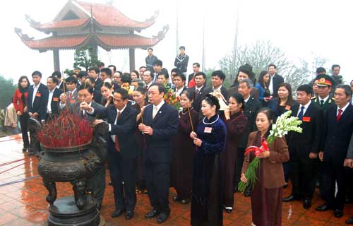 Đúng 8 giờ, đoàn đại biểu Tỉnh uỷ, HĐND, UBND tỉnh Thái nguyên do đồng chí Phùng Đình Thiệu, Ủy viên Ban Thường vụ, Trưởng ban Dân vận Tỉnh ủy làm Trưởng đoàn, cùng lãnh đạo huyện Định Hoá đã trang trọng thực hiện nghi lễ dâng hương, báo công với Bác Hồ kính yêu tại Nhà tưởng niệm Người. Từ ngọn Đèo De, tiếng chuông, khánh đã gióng lên, ngân vang âm hưởng mang theo niềm tự hào của những người con sinh thành, lớn lên trên vùng đất cách mạng ATK Định Hoá.