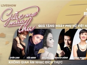 Tiến tới kỷ niệm ngày Phụ nữ Việt Nam, tại Hà Nội sẽ diễn ra đêm nhạc “Giấc mơ mùa Thu” ngày 19/10 tại Cung văn hóa Hữu Nghị Việt Xô, với sự tham gia của các ca sỹ Mỹ Linh, Hồng Nhung, Quang Dũng, Tấn Minh, Uyên Linh, ban nhạc Thanh Phương.