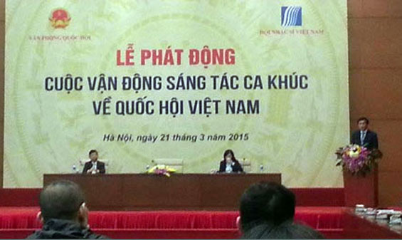 Hướng tới kỷ niệm 70 năm ngày Tổng tuyển cử bầu Quốc hội Việt Nam (6/1/1946-6/1/2016), Ngày 21/3/2015, Văn phòng Quốc hội và Hội nhạc sĩ Việt Nam phối hợp tổ chức lễ phát động Cuộc vận động sáng tác ca khúc về Quốc hội Việt Nam.