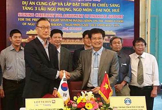 Công ty Lotteria Việt Nam (thuộc tập đoàn Lotte, Hàn Quốc) vừa ký kết biên bản thỏa thuận ghi nhớ với Trung tâm Bảo tồn Di tích Cố đô Huế về việc tài trợ lắp đặt thiết bị chiếu sáng cho tầng 3 lầu Ngũ Phụng, Ngọ Môn - Đại Nội Huế.