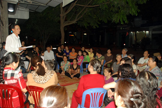 Bà con đã không ít lần đề nghị chính quyền địa phương bố trí quỹ đất xây Nhà văn hóa nhưng chưa được đáp ứng. Được chứng kiến một buổi họp của người dân TDP số 10 vào một ngày cuối tháng 4, chúng tôi thấy các hộ dân tham gia sinh hoạt phải ngồi trên vỉa hè, sát với lòng đường, ghế không có đủ, một số người còn phải ngồi xuống chiếu. Dưới ánh đèn com pắc không đủ sáng, ông Tổ trưởng TDP phải căng mắt mới nhìn thấy những dòng chữ nhỏ ghi trên giấy. Thi thoảng lại có tiếng người lớn quát trẻ con chạy ra đường khiến cho buổi họp bị ngắt quãng... Bà Nguyễn Thị Sáu, người đã sống gần 70 năm trong tổ bức xúc: Tôi thấy việc một TDP không có nơi sinh hoạt văn hóa, họp chi bộ là rất khổ. Cả tổ phải mượn hết nhà nọ đến nhà kia để họp, ngày nắng còn đỡ chứ ngày mưa gió thì khổ vô cùng... Bà Vũ Thị Hồng, người dân trong tổ cho biết: Gia đình tôi đã cho tổ mượn nơi sinh hoạt trên 20 năm nay, vì họp trong nhà chật chội, không đủ chỗ nên bà con đến đây đều phải ngồi trên vỉa hè.