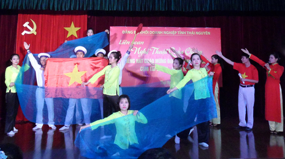Ngày 21-6, tại Ngân hàng Nông nghiệp và phát triển Nông thôn, Chi nhánh tỉnh Thái Nguyên, Cụm thi đua Tài chính - Ngân hàng thuộc Đảng bộ Khối doanh nghiệp tỉnh Thái Nguyên đã tổ chức Liên hoan nghệ thuật quần chúng "Tiếng hát chào mừng Đại hội Đảng các cấp" năm 2015.