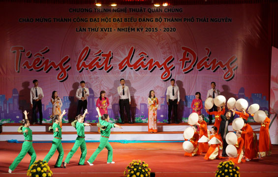 Tối 4-8, tại Rạp Măng non (Nhà thiếu nhi Thái Nguyên), UBND T.P Thái Nguyên đã tổ chức chương trình Liên hoan nghệ thuật quần chúng chào mừng thành công Đại hội Đảng bộ Thành phố lần thứ XVII, nhiệm kỳ 2015-2020 với chủ đề “Tiếng hát dâng Đảng”.