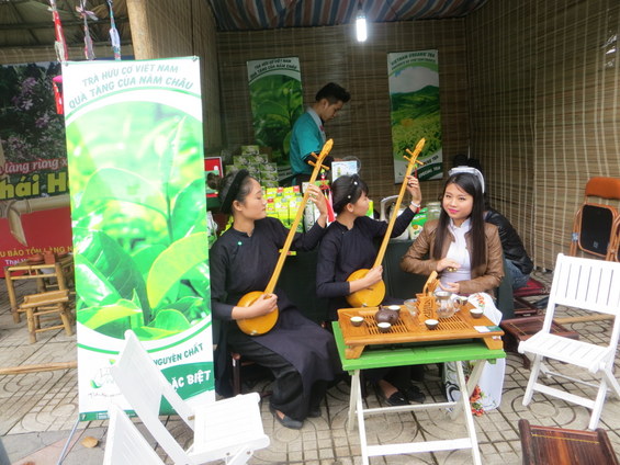 Gian giới thiệu sản phẩm chè tại Liên hoan Trà lần thứ ba ấm nồng mùi Thái Nguyên - mùi trà. “Trà nương” người đất chè chính cống, có cách pha trà độc đáo, gọi là trà “úp”. Ngoài 6 cái chén thông thường bàn nước nào cũng có, thêm 6 cái chén cao chừng 2 đốt tay, to hơn ngón tay cái. Nước trà nóng rót vào chén cao, úp chén thấp lên trên, đợi khoảng nửa phút thì nhanh tay lật ngược, nhấc chén cao ra. Ta được một chén nước và một chén hương. Đưa chén hương lên mũi thưởng thức mùi trà ngầy ngậy, tinh khôi, thấy lòng bỗng nhẹ nhàng thanh thoát lạ. Chén hương nguội dần trong lòng tay cũng là lúc chén nước vừa độ uống. Cách thưởng trà này khiến ta cảm nhận hết tấm tình chè dâng hiến.