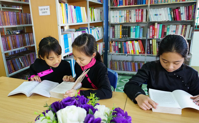 Để thư viện có thêm nhiều đầu sách, Ban giám hiệu Nhà trường đã khuyến khích các thầy cô giáo tổ chức các đợt quyên góp sách ngoài sách được Sở Giáo dục và Đào tạo cấp và sách do chính nhà trường tự mua. Thầy giáo Chu Anh Hào, bộ môn Toán chia sẻ: Tập thể giáo viên thường xuyên tổ chức các ngày hội quyên góp sách. Mỗi giáo viên đều hăng hái tham gia quyên góp sách vì chúng tôi biết rằng các em học sinh ở đây điểu kiện để đọc và tiếp cận với các loại sách báo mới còn nhiều hạn chế. Hiện nay, số lượng sách trong thư viện gồm gần 15.000 đầu sách các loại như sách giáo khoa, sách hướng dẫn, sổ tay, từ điển, văn học, truyện thiếu nhi… các loại báo, tạp chí như báo Nhân Dân, Thái Nguyên, Lao động, Thiếu nhi Dân tộc, Thiếu niên Tiền phong, Hoa Học Trò…